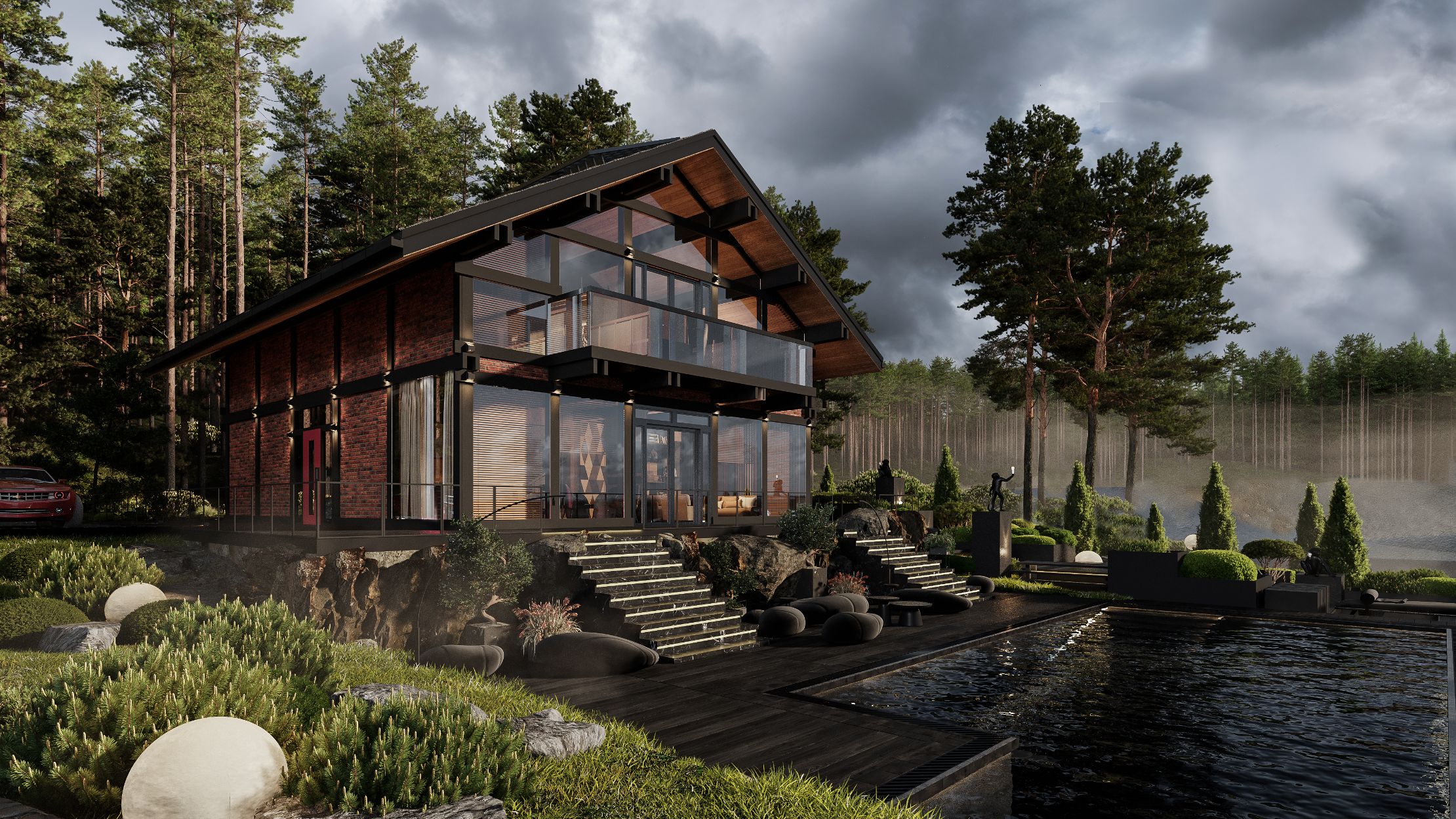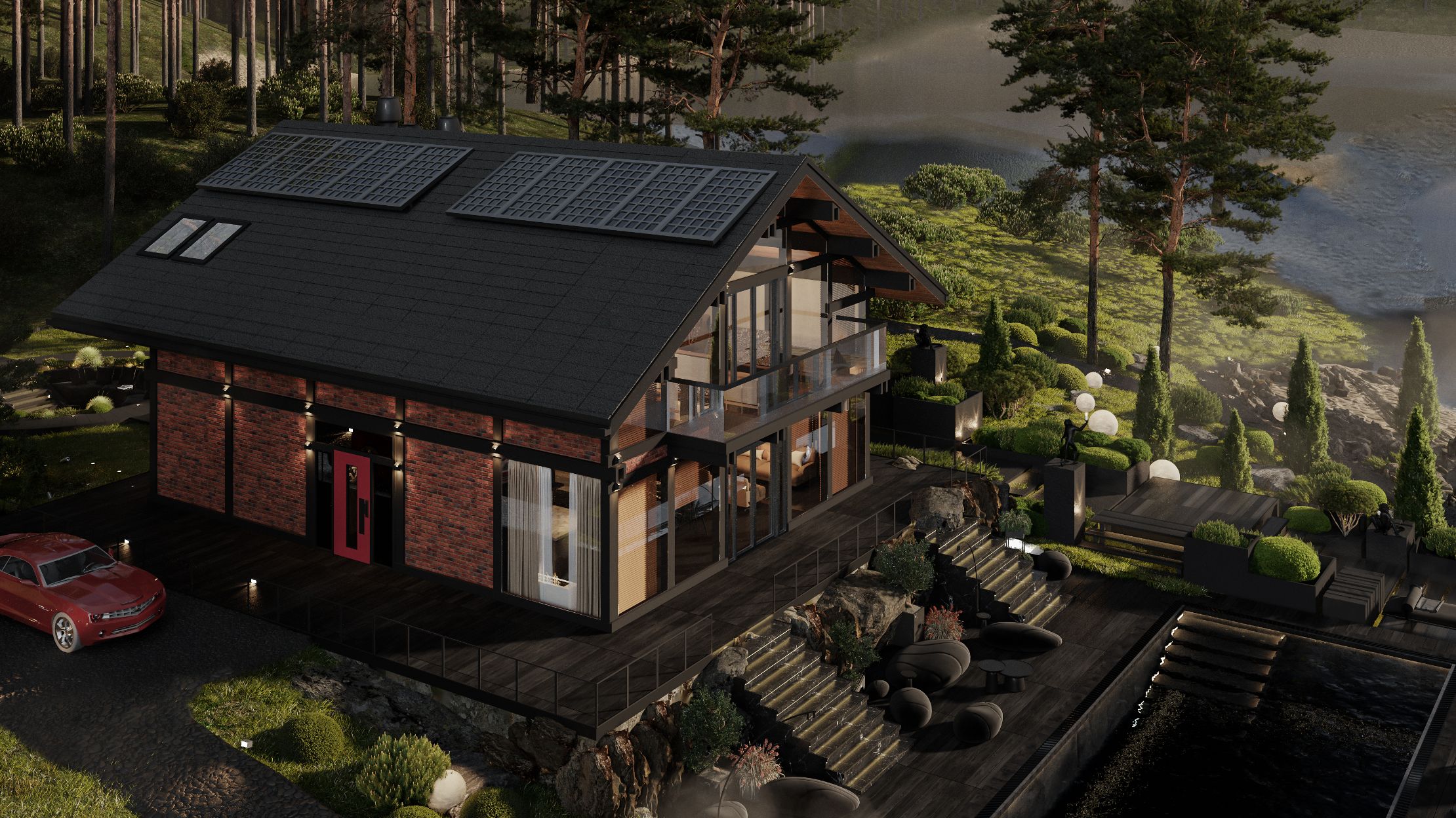Что может быть прекрасней и удивительней, чем ощущение жизни в комфортном доме и, в то же время, в самой чаще соснового леса! Ощутить атмосферу туманного утра с запахом мокрой травы и пряным ароматом хвои, насладиться бокалом вина и заходящими лучами солнца в отражении воды озера после жаркого рабочего дня, сидя в расслабляющем джакузи на собственной террасе – это вполне осуществимая мечта современного успешного человека. "Seven" - идеальный дом в стиле «ФАХВЕРК», в котором воплощена в жизнь концепция последовательных бескомпромиссных инноваций "Newer Luxury" сегмента. Использование самых передовых технологий, таких как «умный дом», современная архитектурная стилистика с панорамным остеклением и вторым светом — это не только шаг в сторону нового уровня жизни, но и крепкие инвестиции, которые не потеряют актуальности для нескольких поколений.