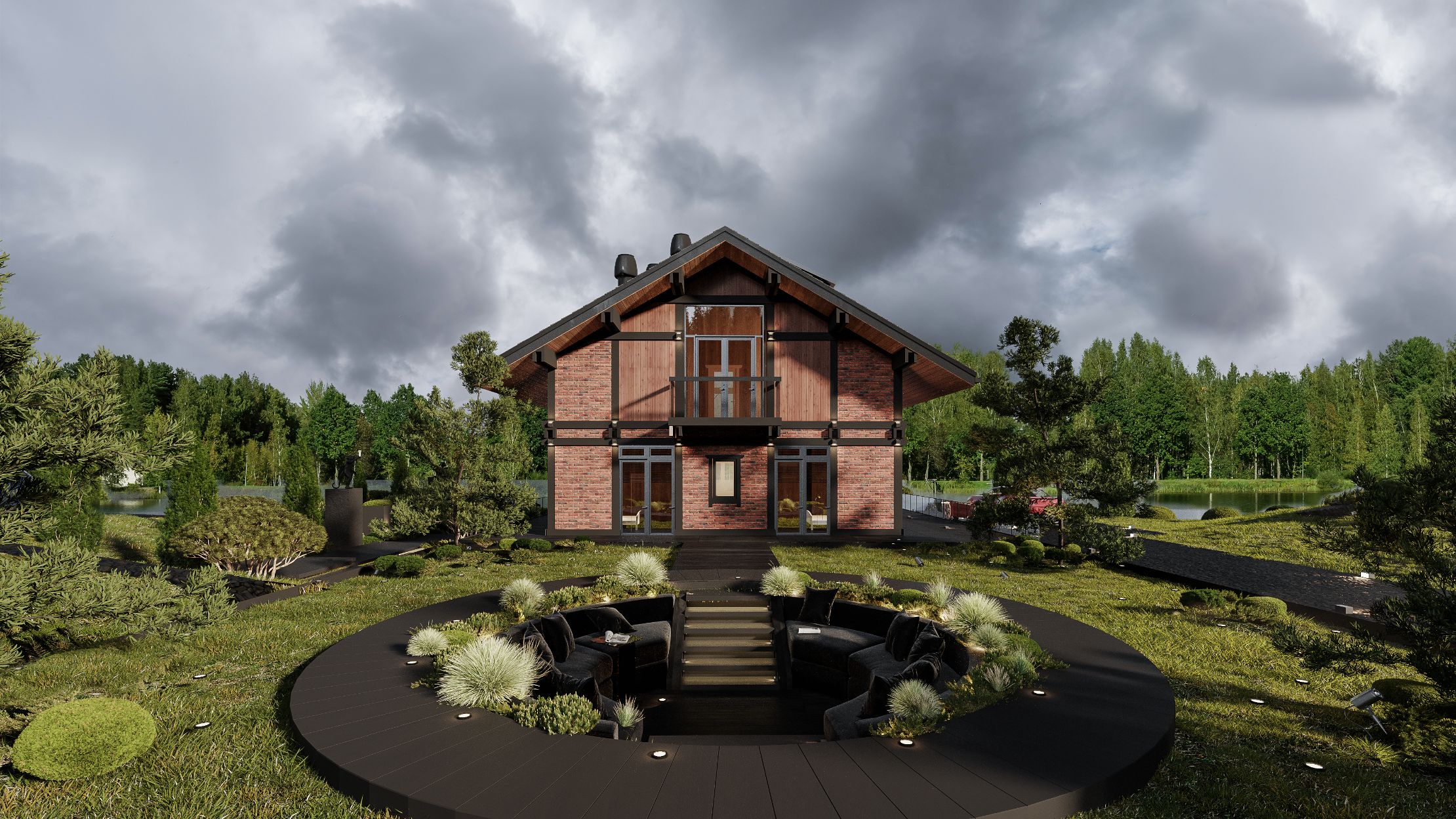 Высокая звукоизоляция окон, тёплые полы, биокамины и такие приятные мелочи как арома-диффузоры, поддержат концепцию комфортного и уютного пространства внутри дома. Продолжением станет прекрасный ландшафтный дизайн с лаундж - зоной на заднем дворе, который своими мягкими диванами и подушками дополнит атмосферу релакса неторопливой загородной жизни. Здесь, в уединении, в тени деревьев, можно удобно расположиться с чашечкой утреннего кофе или подписать с партнерами по бизнесу долгожданный проект.